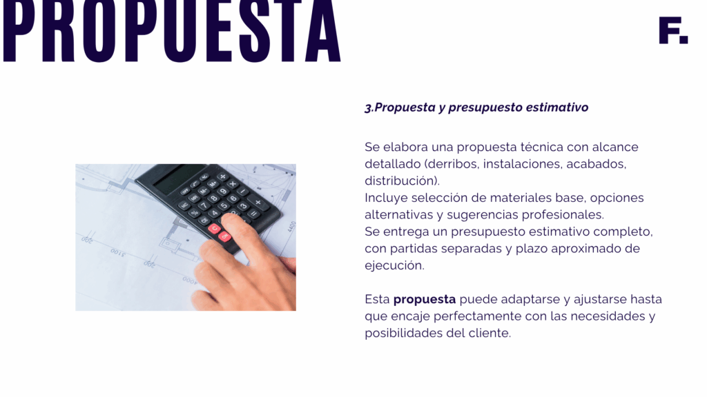 Un presupuesto de reforma integral debe ser claro, detallado y reflejar con precisión los trabajos a realizar. En Firme Constructora, nuestros presupuestos incluyen: