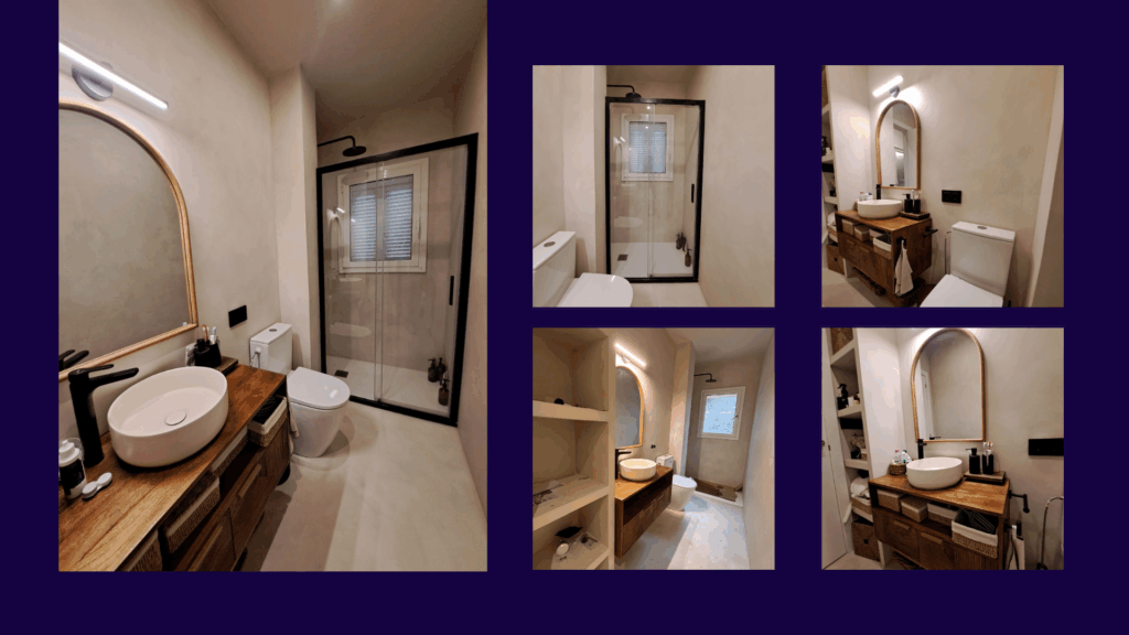 Nos encontramos con un baño de estética tradicional, con baldosas en pavimento y revestimientos que limitaban la sensación de amplitud. Junto a la propiedad, iniciamos un proceso de diseño y planificación con un objetivo claro: transformar el espacio en un baño contemporáneo, continuo y fácil de mantener. Apostamos por una renovación integral, sustituyendo las juntas por superficies continuas y seleccionando microcemento en tonos claros para potenciar la luminosidad y crear un ambiente más amplio, sereno y pensado para el bienestar y la intimidad.